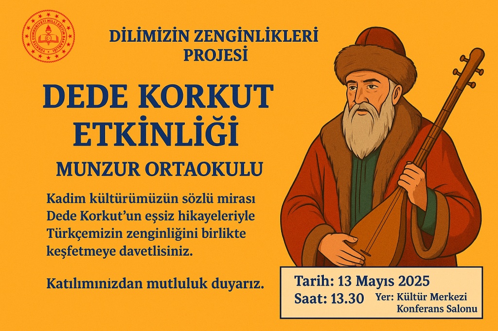 Dilimizin Zenginlikleri Projesi kapsamında gerçekleştirecek olduğumuz Dede Korkut Etkinliğine velilerimiz ve öğrencilerimiz davetlidir.
